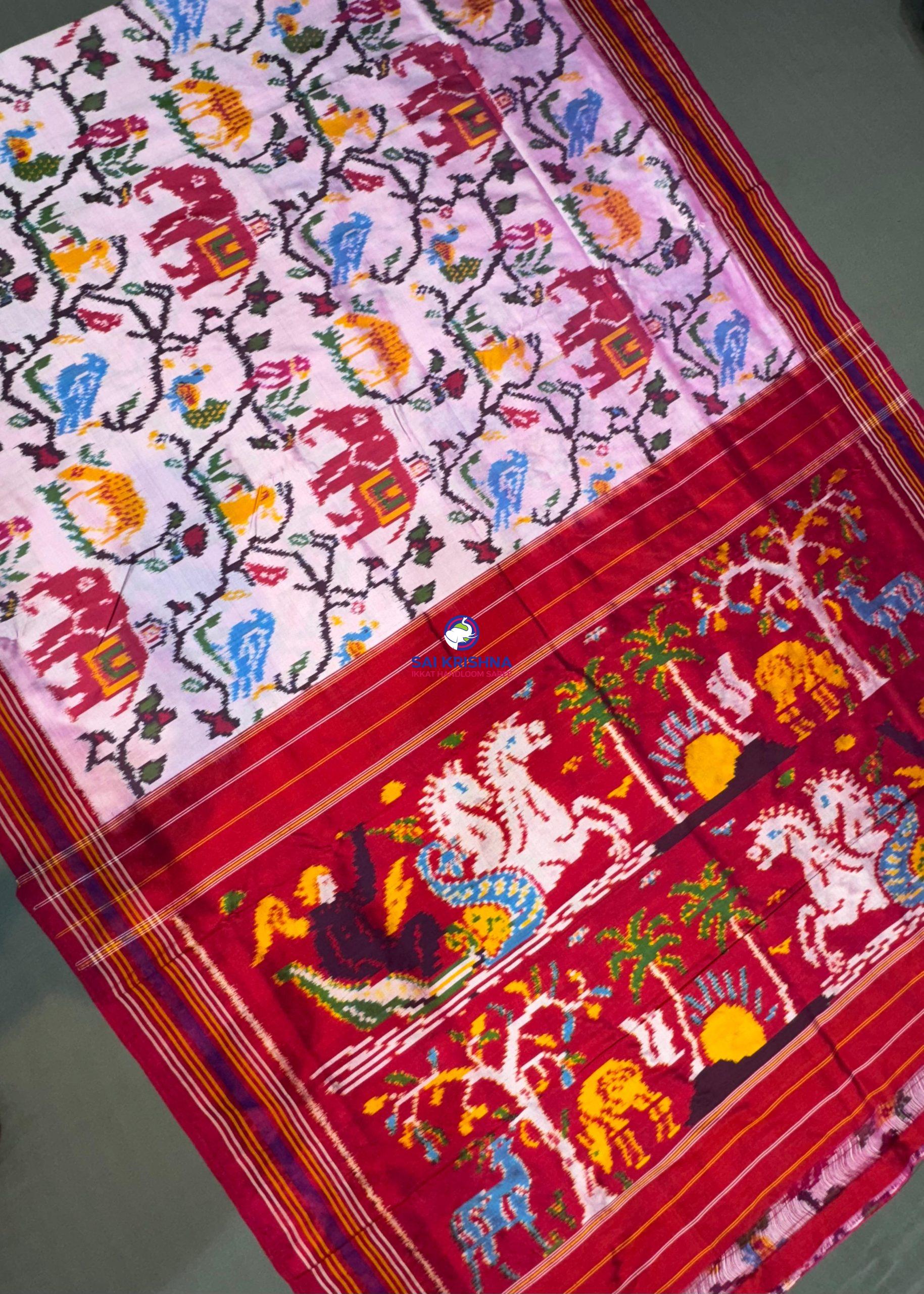 – *Luxurious Fabric:* Made from the finest Patola silk, renowned for its durability, softness, and luxurious sheen.